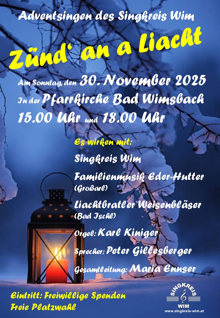 Wir laden euch auch heuer wieder zu unserem Adventsingen "Zünd an a Liacht" ein.